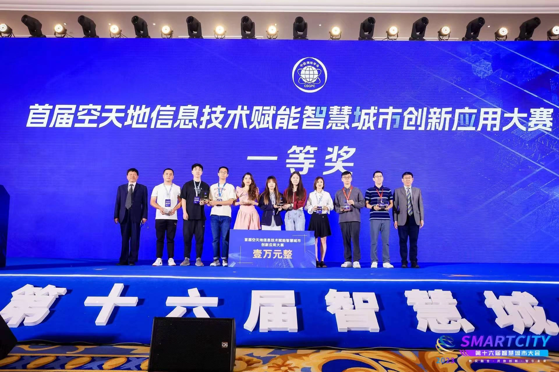 2023年10月12日至13日,第十六届智慧城市大会在广州市成功举办,大会开幕式上同步举行了全国首届空天地信息技术赋能智慧城市创新应用大赛颁奖典礼。由课题组学生团队(2021级硕士研究生周志国,2023级硕士新生江楠、杜欣玲、沈渤、白娟)提交的作品《FastSAMBuilding: 耦合通用/专用网络的建筑提取模型及其应用》荣获一等奖,孙维东副研究员以指导教师身份荣获伯乐奖。